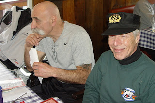 Pogy did a bit of construction ogling himself. At lunch he complained there were no American flags flying from tops of any construction cranes. Usually some patriotic worker puts a flag on the pinnacle of the highest crane. At lunch we speculated the work is outsourced to the Chinese. I was guilty of a bit of construction rubbernecking myself on the ride home confirming Pogy's concern. All I saw were checkerboard orange and white aviation warning flags. Bridge commissioners, if you're listening, Pogy has a suggestion. Or all our blog readers could go on the new bridge web site and suggest they display a flag.